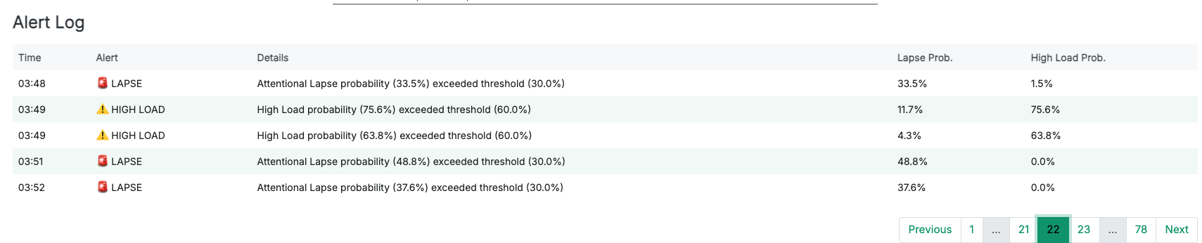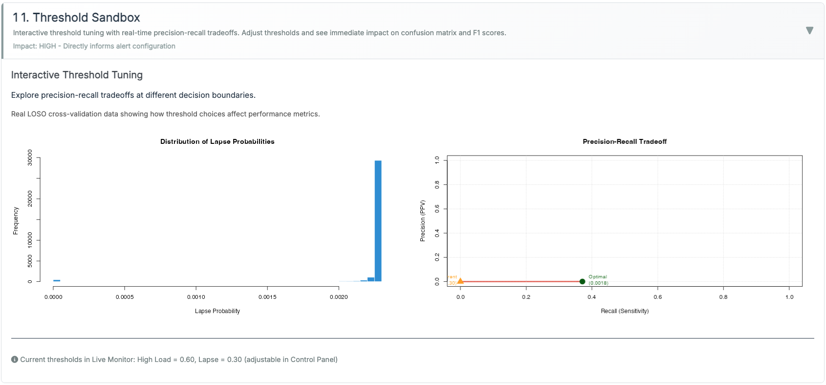 - Maps to Dashboard. The control sets the HL and Lapse thresholds together. Alerts still require evidence + physiology (e.g., HL requires TEPR↑ or HRV↓; Lapse prefers low TEPR + blink anomalies).