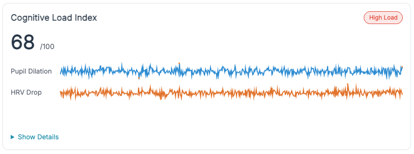 - Instructors. A common language for when to step in: high-load confirmed by TEPR↑ + HRV↓, lapse suggested by low TEPR + blink anomalies.