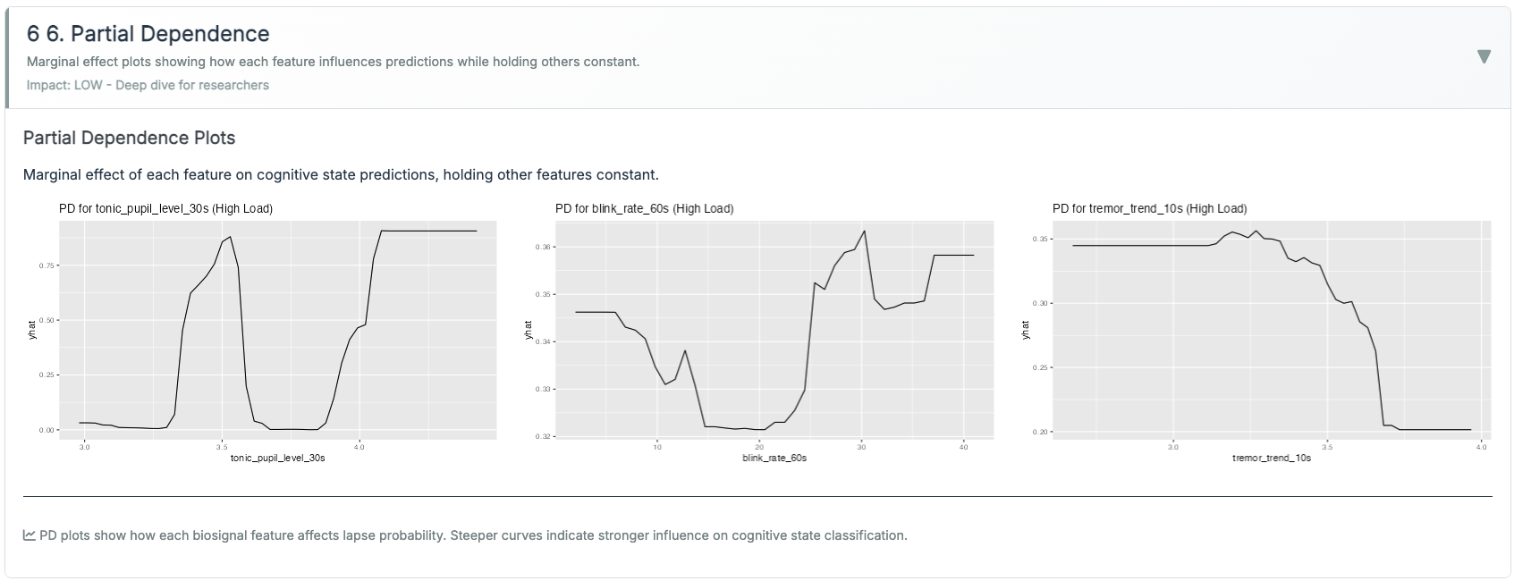 - Interpretability on contact. “High-Load confirmed (TEPR↑ + RMSSD↓)” is actionable; a confusion matrix mid-case is not.