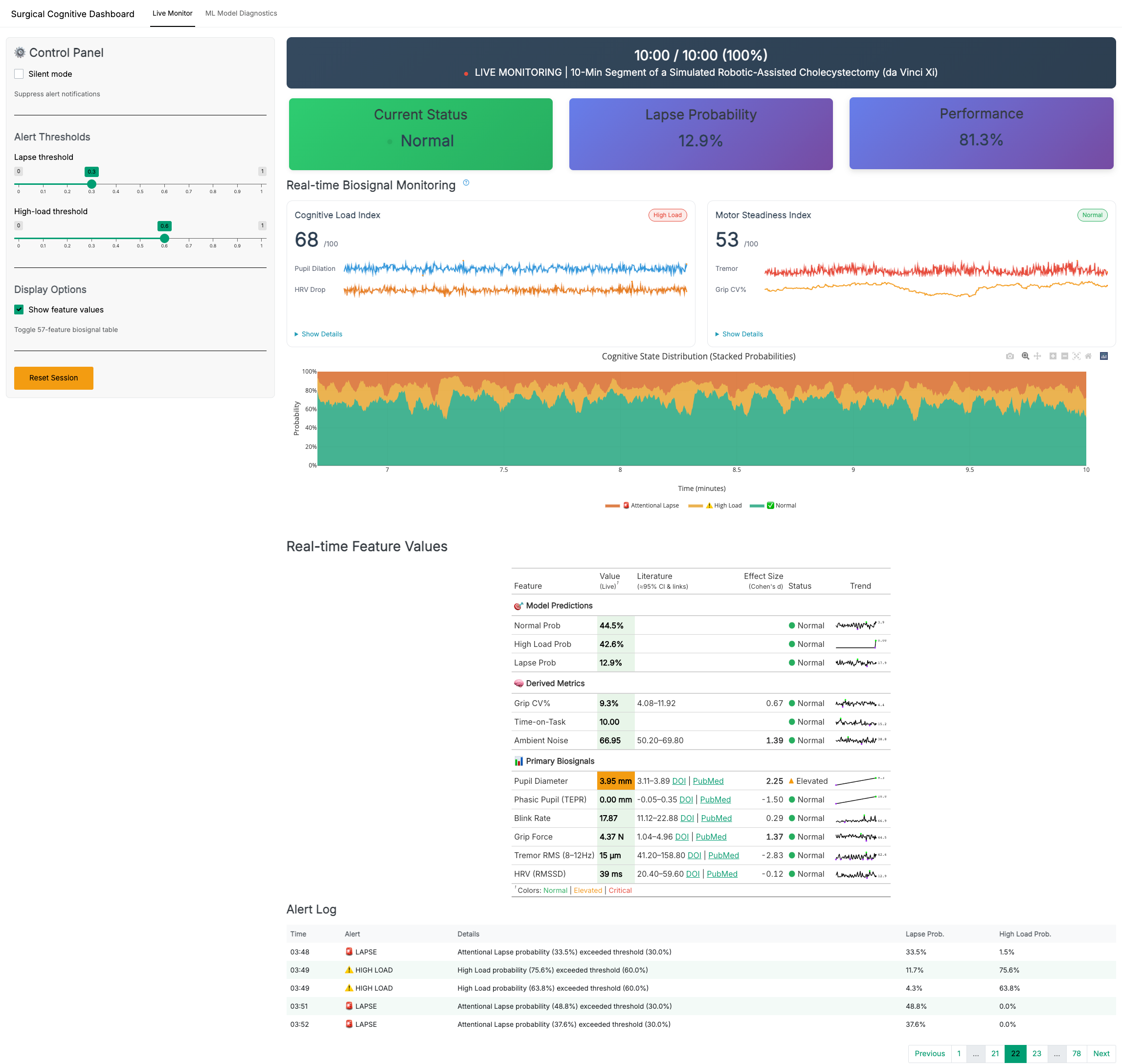 links arousal to performance.Why this dashboard: combine deployable UX from SST with mechanistic LC–NE insight to deliver a training-first, no extra wearables cognitive monitor for robotic trainees.