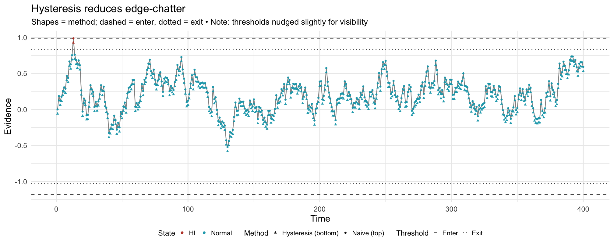 - Dual-Criterion (SDT) with hysteresis: two criteria + enter/exit guards.